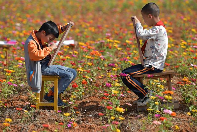 寨下鎮中心小學的學生們(men) 在花田寫(xie) 生(11月9日攝)。新華社記者 彭昭之 攝