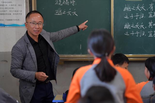 寨下鎮中心小學校長殷大福給學生們(men) 上課(11月9日攝)。