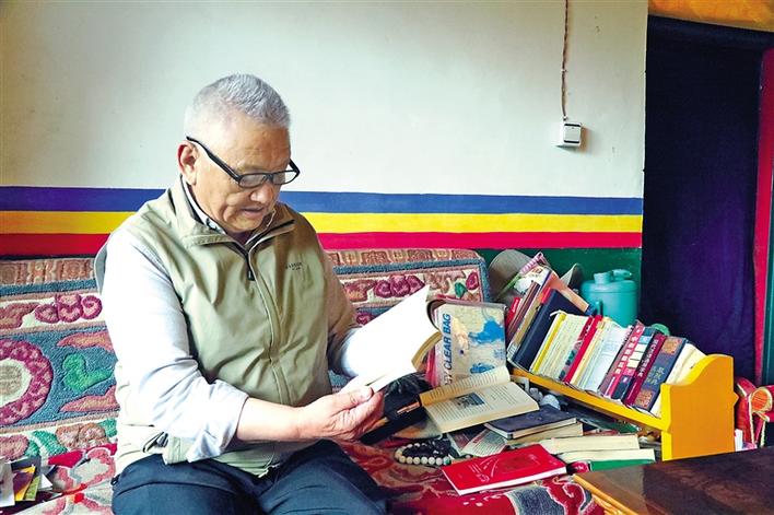 圖為(wei) 洛桑公覺在翻閱資料。段敏 攝
