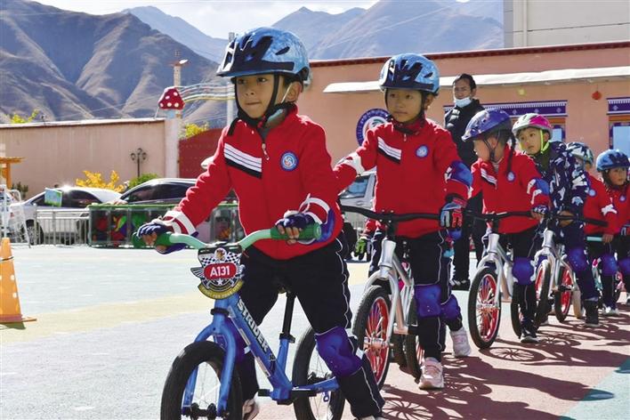 2020年西藏自治區“體育項目進校園”活動-兒童滑步車項目17日在拉薩市實驗幼兒園本部園區舉行,現場幼兒園的孩子們在教練的指導下學練滑步車。[詳細]