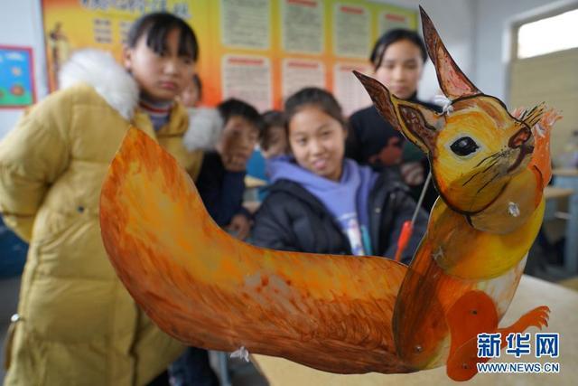 11月24日,皮影戲藝人在河北省沙河市西油村小學為(wei) 學生講解皮影戲道具使用方法。