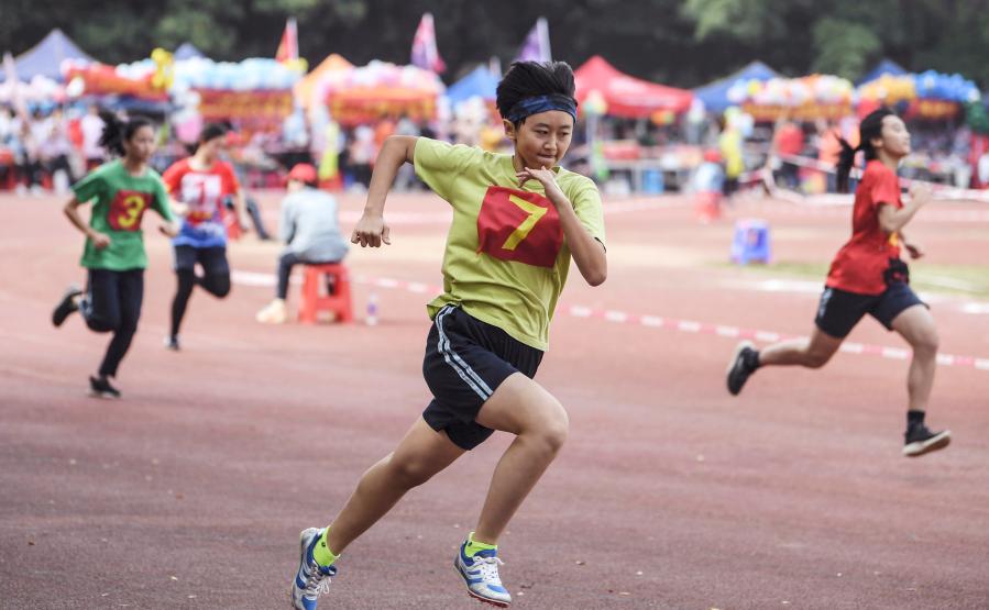 11月26日, 廣西大學附屬中學初中年級學生在200米跑比賽中。新華社記者張愛林攝
