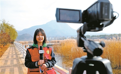 “金秋時節,聽說清水河又飛來了白天鵝,我們(men) 特意來到河邊探訪一下……”太師屯鎮中心小學校園電視台小記者實地采訪、精心錄製,專(zhuan) 題節目《守護天鵝》通過校園電視台向師生及家長播出。樊世剛 攝