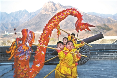 北京市密雲(yun) 區古北口鎮中心小學結合戍邊文化、地域文化,成立“舞龍”社團。喜愛傳(chuan) 統舞龍文化的學生登上長城,舞出“堅毅”精神,舞出時代風采,舞出民族自豪。樊世剛 攝