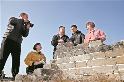 “讓每一塊城磚開口,讓每一處遺址說話。”古北口鎮中心小學校長徐國文(左三)帶領教師把教研活動搬到了長城上,探討如何打破課程設置“壁壘”,在考察、尋訪、探究、實踐中培養(yang) 學生堅毅品格。樊世剛 攝