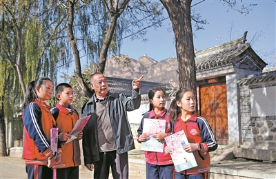 長城腳下美麗(li) 的河西村為(wei) 什麽(me) 會(hui) 有137個(ge) 姓氏?走在村中古樸的小路上,聆聽老支書(shu) 張玉山的講述,古北口鎮中心小學學生探尋河西村多民族、多姓氏融合的“百姓村”成因。樊世剛 攝