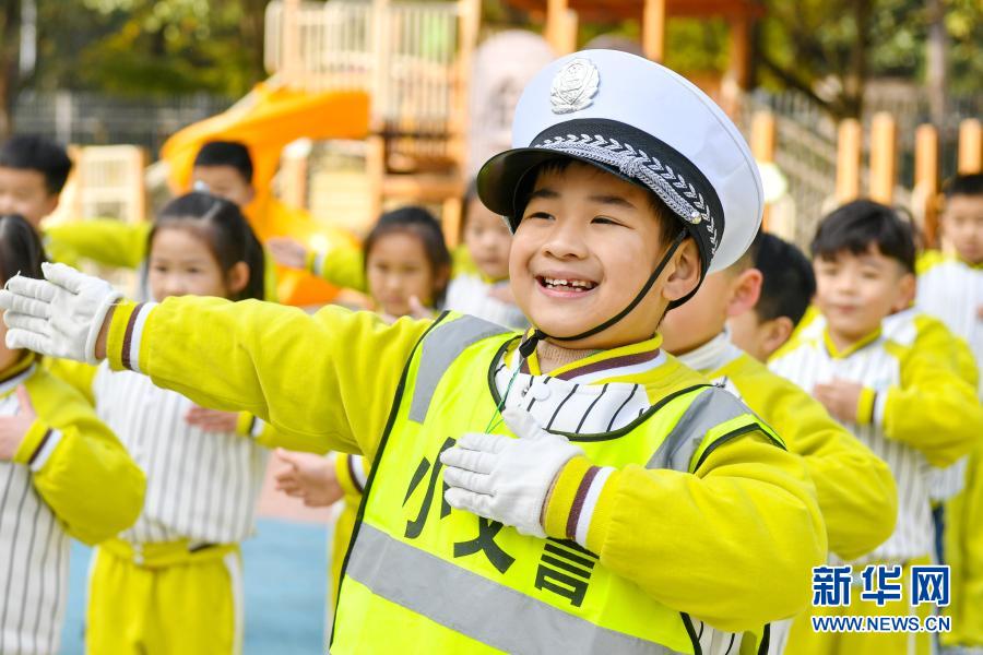 11月30日,浙江省湖州市長興(xing) 縣龍山幼兒(er) 園的孩子們(men) 在學習(xi) 交通指揮手勢。在12月2日“全國交通安全日”即將到來之際,各地舉(ju) 行了形式多樣的教育活動,讓孩子們(men) 在趣味活動中樹立交通安全法治意識,養(yang) 成文明出行好習(xi) 慣。新華社發(譚雲(yun) 俸 攝)