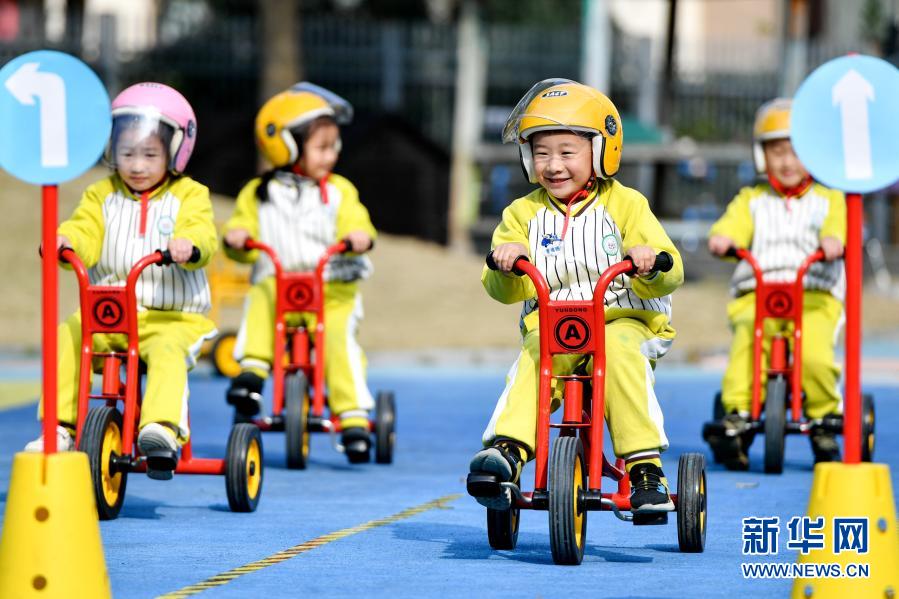 11月30日,浙江省湖州市長興(xing) 縣龍山幼兒(er) 園的孩子們(men) 在做“安全騎行”遊戲。新華社發(譚雲(yun) 俸 攝)