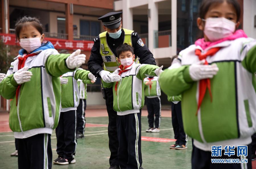 11月30日,河北省邯鄲市公安局交巡警支隊叢(cong) 台一大隊的民警在指導叢(cong) 台小學的學生們(men) 學習(xi) 交通指揮手勢。新華社發(郝群英 攝)