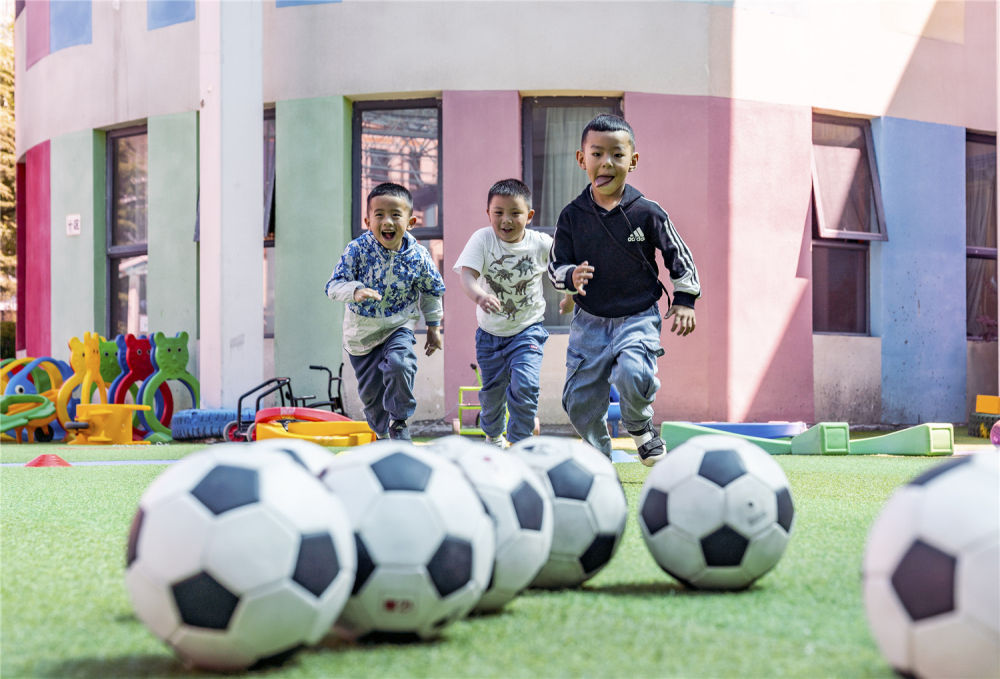 這是西藏自治區實驗幼兒(er) 園大班的孩子們(men) 進行足球訓練(2019年8月22日攝)。新華社記者 孫非攝