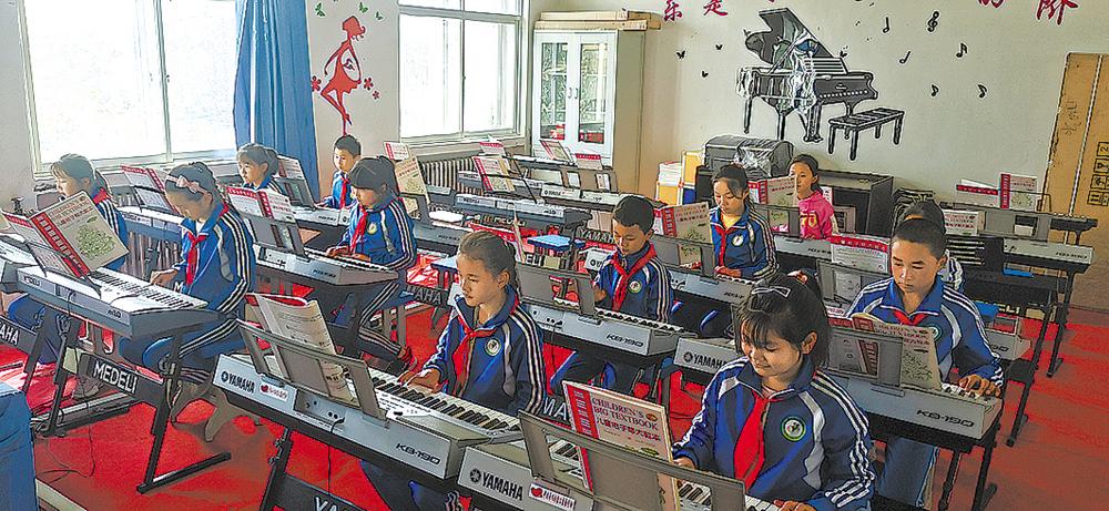 尖紮縣中學孩子們(men) 在學校少年宮學習(xi) 電子琴。