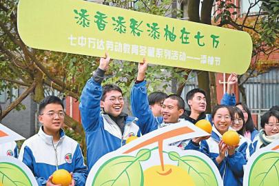 12月4日,成都七中萬(wan) 達學校首屆“添柚節”開幕。“添柚節”覆蓋了多個(ge) 年級,設置了多項活動,並融入學科元素,如初一年級結合生物和美術學科,或用柚子做小零食進行義(yi) 賣,或在柚子上繪出不同的圖案;初二年級則結合地理和美術學科,描繪出一幅幅中國的“水果”地圖;高三年級的學生摘下柚子與(yu) 老師一同品嚐豐(feng) 收的味道。