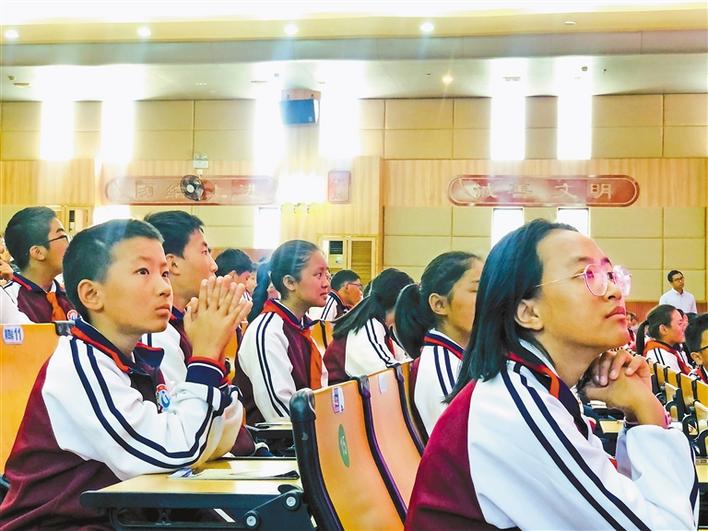珠海四中內(nei) 地西藏班師生認真聽取報告。