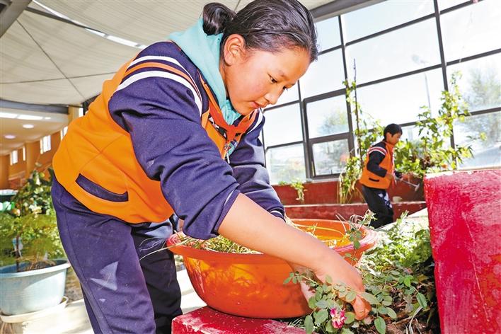 日喀則市上海實驗學校的學生在種植專(zhuan) 業(ye) 課上學習(xi) 種植花卉。
