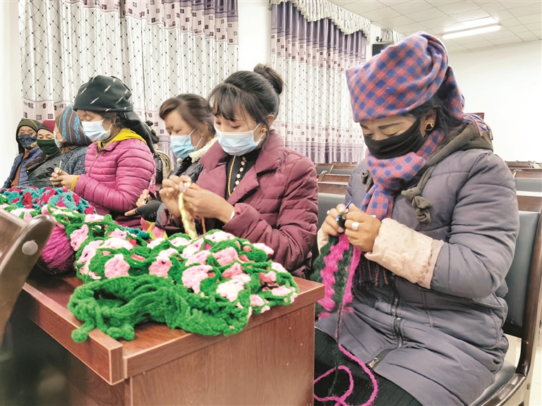 近日,在邦堆鄉(xiang) 克日村,村婦聯組織20餘(yu) 名婦女集中開展了“巾幗夜校領學”活動,學員們(men) 現場進行手工編織。今年57歲的歐珠措姆2019年開始學習(xi) 手工編織,現在已經能夠編織成品進行銷售了。據了解,克日村婦女手工編織成員經過兩(liang) 年培訓,目前均已能夠生產(chan) 出單個(ge) 產(chan) 品。通過售賣產(chan) 品,農(nong) 閑時期平均每人至少能增加800元的收入。