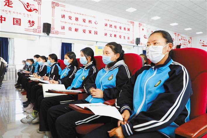圖為(wei) 學生們(men) 在認真聆聽“四講四愛”示範宣講。溫凱 洛桑旦增 達珍 紮西羅布 攝