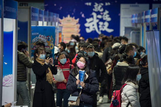 12月2日,2021屆全國普通高校畢業(ye) 生就業(ye) 創業(ye) 促進行動(湖北·武漢)對接大會(hui) 在洪山體(ti) 育館正式啟動。人民視覺供圖