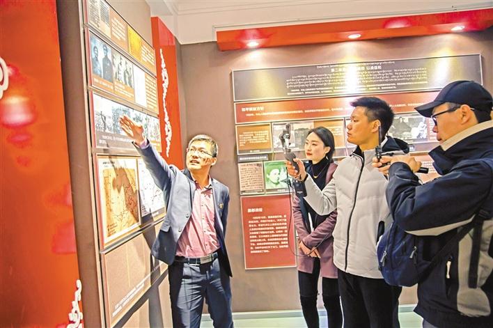 圖為(wei) 波密縣委紅樓的工作人員在為(wei) 慕名而來參觀的遊客講解紅樓曆史。張猛 胡文 攝