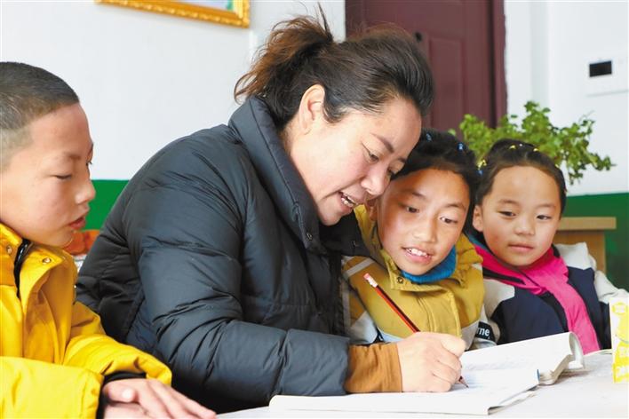 圖為(wei) 寒假期間,德西拉措給福利院孩子輔導作業(ye) 。桑鄧旺姆 攝