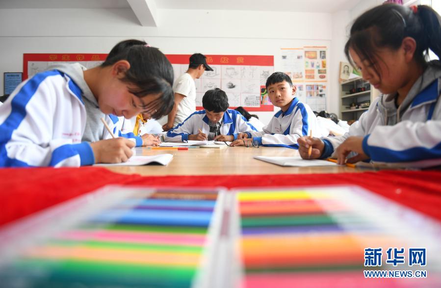 位於(yu) 芒康縣鹽井納西民族鄉(xiang) 的鹽井中學學生在上美術課(2019年6月5日攝)。鹽井中學是西藏第一所在鄉(xiang) 村設立的中學。新華社記者 晉美多吉 攝