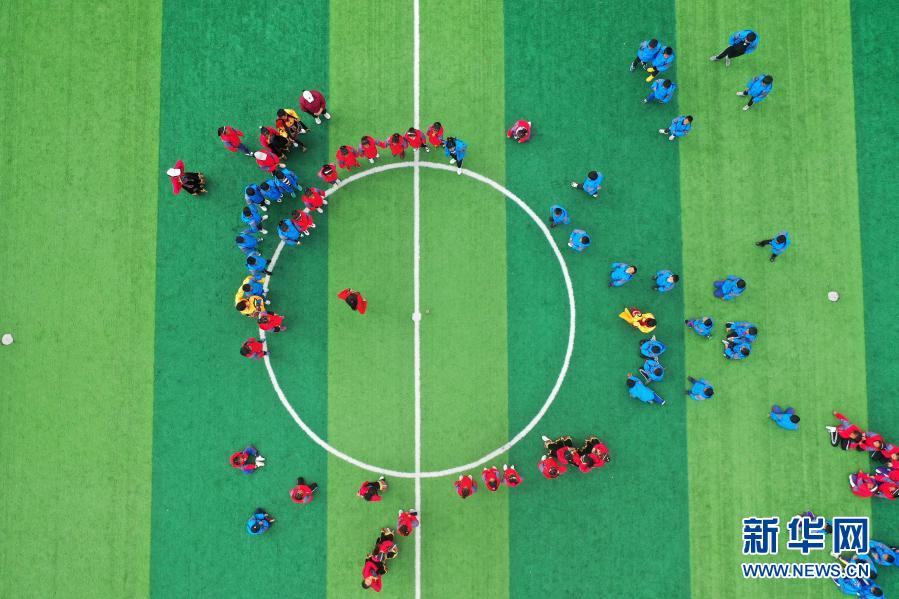 在西藏林芝市波密縣多吉鄉(xiang) 中心小學,學生們(men) 在學習(xi) 西藏自治區級非遺項目“波央”的曆史(10月13日攝,無人機照片)。新華社記者 詹彥 攝