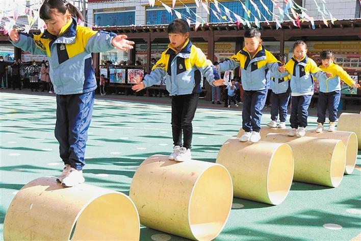 圖為(wei) 山南市實驗幼兒(er) 園的孩子在表演滾輪節目。巴桑旺姆 攝