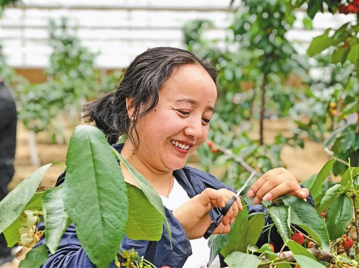 拉薩尼木縣現代農業產業園車厘子種植負責人德吉和基地內其他6名“點對點”產業幫扶幹部一起,“手把手”教授98戶建檔立卡貧困戶學習種植技術。[詳細]