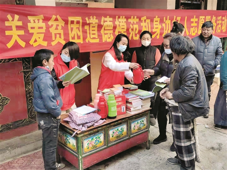28日,拉薩市委宣傳(chuan) 部機關(guan) 黨(dang) 支部誌願服務隊深入我市道德模範和身邊好人家庭,開展慰問幫扶、送溫暖、獻愛心活動,還清掃街道,營造了幹淨整潔的環境。