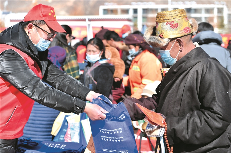 隨著春節、藏曆新年腳步越來越近,熱熱鬧鬧的年味越來越濃。2月1日,由拉薩市委宣傳(chuan) 部牽頭,市文聯、市教育局、市司法局、市衛健委等16家單位走進墨竹工卡縣新時代文明實踐中心,開展文化科技衛生法律愛國愛教服務“五下鄉(xiang) ”活動,為(wei) 當地群眾(zhong) 送上新年禮物。