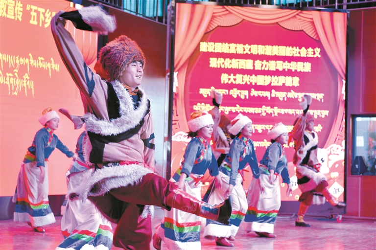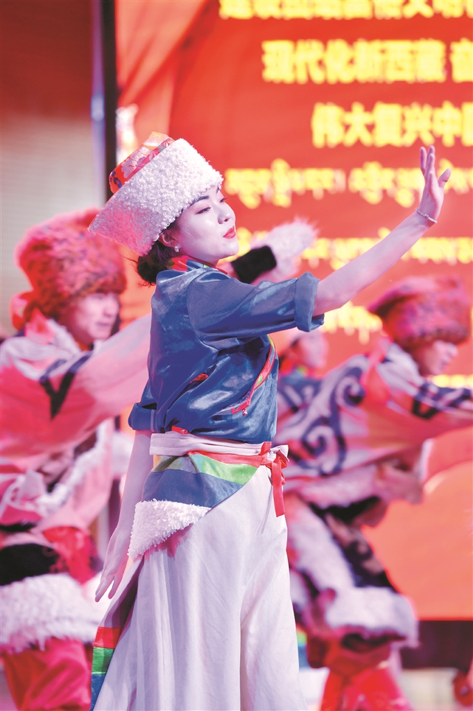 活動現場,演員們(men) 為(wei) 大家帶來了精彩的歌舞表演。圖片由拉薩融媒視覺組攝