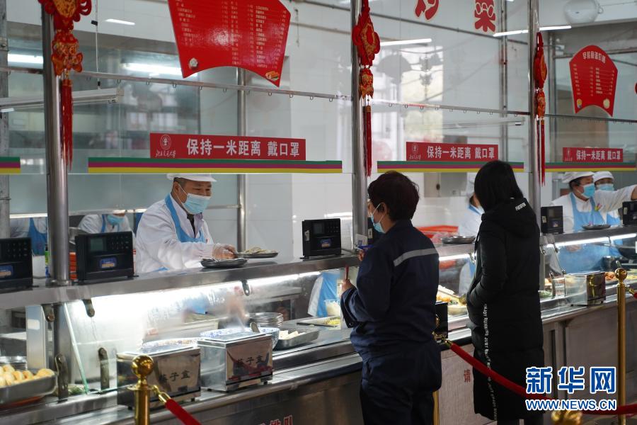 2月8日,北京交通大學學生四食堂工作人員為(wei) 留校人員打飯。新華社記者 張浩波 攝