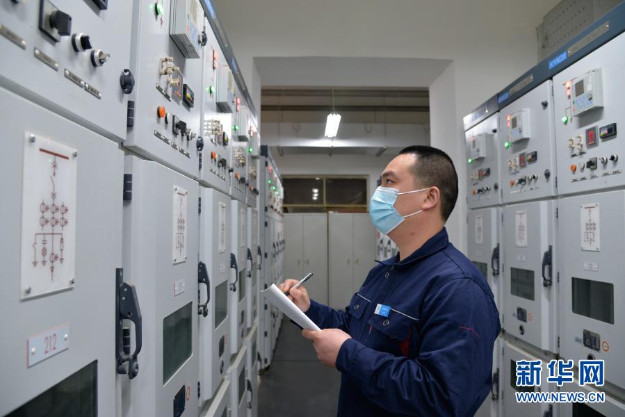 2月9日,北京交通大學後勤集團水電保障中心職工劉帥帥在主校區主配電室配電中心查看高壓配電櫃。新華社記者 徐欽 攝