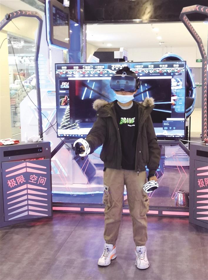 圖為(wei) 寒假期間,一個(ge) 小男孩正在體(ti) 驗VR遊戲的樂(le) 趣。 鄭璐 袁海霞 攝