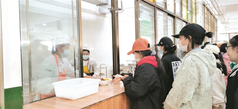 圖為(wei) 拉薩市二職學生在餐廳按需、有序取餐。 拉薩融媒記者 王 雪攝