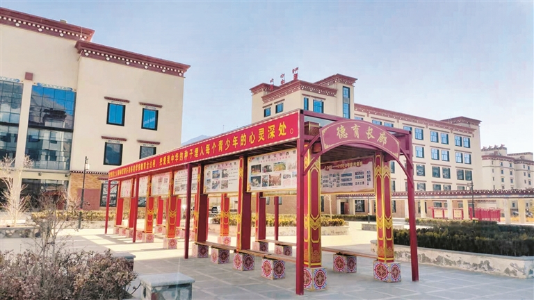 圖為(wei) 拉薩阿裏河北完全中學德育長廊一角。拉薩融媒記者 餘(yu) 洋洋攝