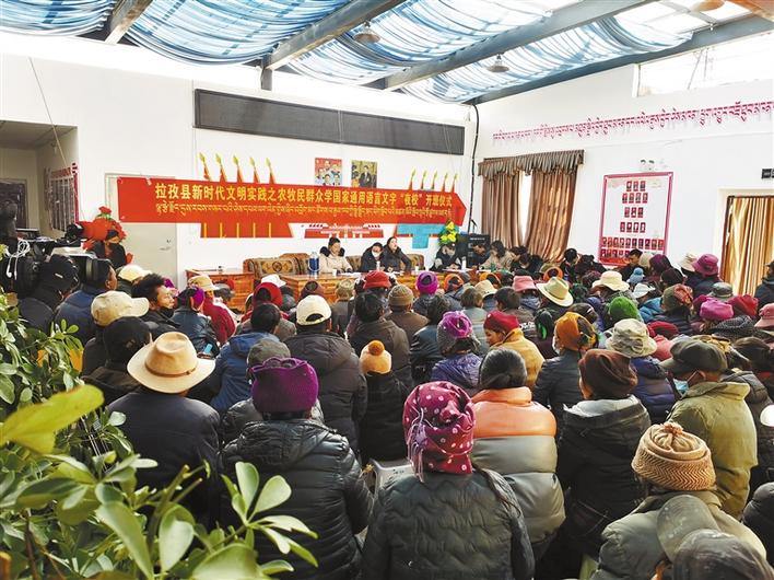 圖為(wei) 拉孜縣新時代文明實踐之國家通用語言文字“夜校”開班儀(yi) 式現場。陳林 攝