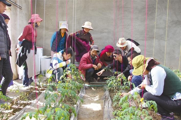 圖為(wei) 技術人員對學員進行西紅柿培管技術指導。巴桑旺姆 攝