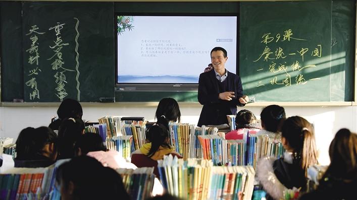“借眼”授課28年的鄉(xiang) 村教師盧文建在課堂上講課。(資料圖)