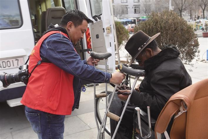 索朗多傑幫助殘疾人朋友。
