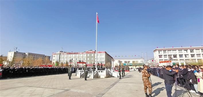 日喀則市紀念“3·28”西藏百萬(wan) 農(nong) 奴解放紀念日升旗儀(yi) 式現場。