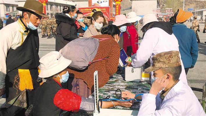 3月28日,亞(ya) 東(dong) 縣駐地官兵為(wei) 當地群眾(zhong) 義(yi) 診。