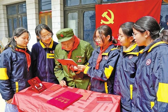 圖為(wei) 南通西藏民族中學學生聽老紅軍(jun) 講革命故事。 圖片由南通西藏民族中學提供