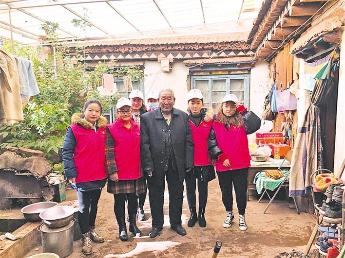 圖為(wei) 誌願者為(wei) 獨居老人打掃衛生後和老人合影。 周婷婷 攝