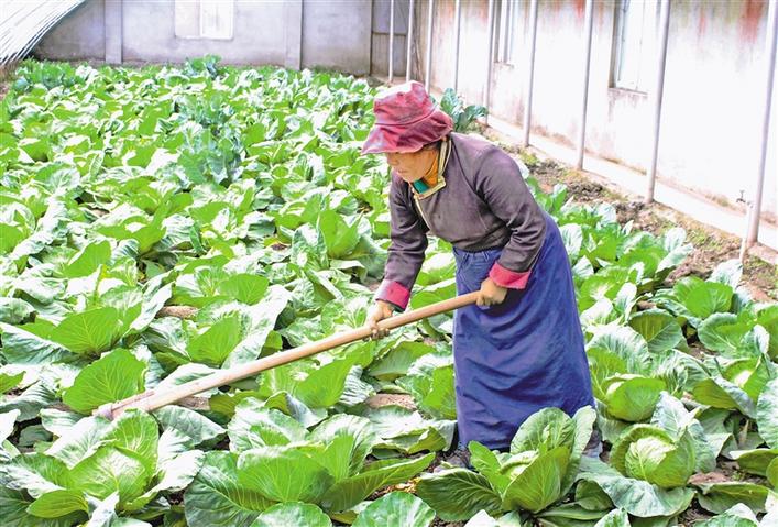 圖為(wei) 洛紮縣建檔立卡貧困戶在吉堆農(nong) 業(ye) 科技示範園內(nei) 種植蔬菜。 巴桑旺姆 攝