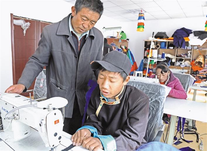 圖為(wei) 洛紮縣殘疾群眾(zhong) 在該縣殘疾人就業(ye) 培訓基地參加縫紉技能培訓。 巴桑旺姆 攝