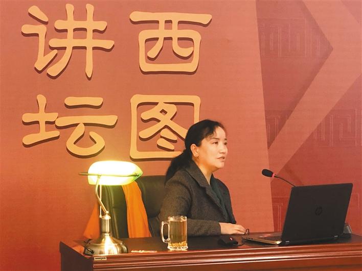 圖為(wei) 明吉措姆在“西圖講壇”講座。記者 曉勇 攝