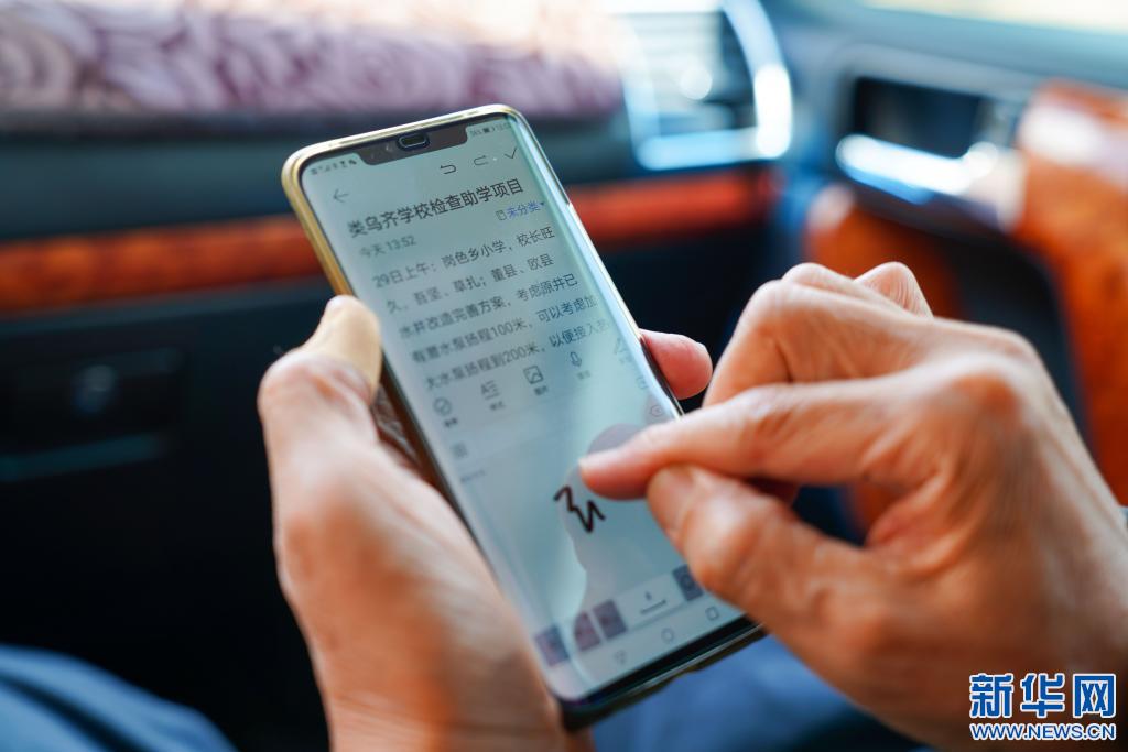 5月1日,李純民在前往西藏昌都市類烏(wu) 齊縣伊日鄉(xiang) 小學途中,整理記錄此次進藏助學事宜。新華社記者 黃臻 攝
