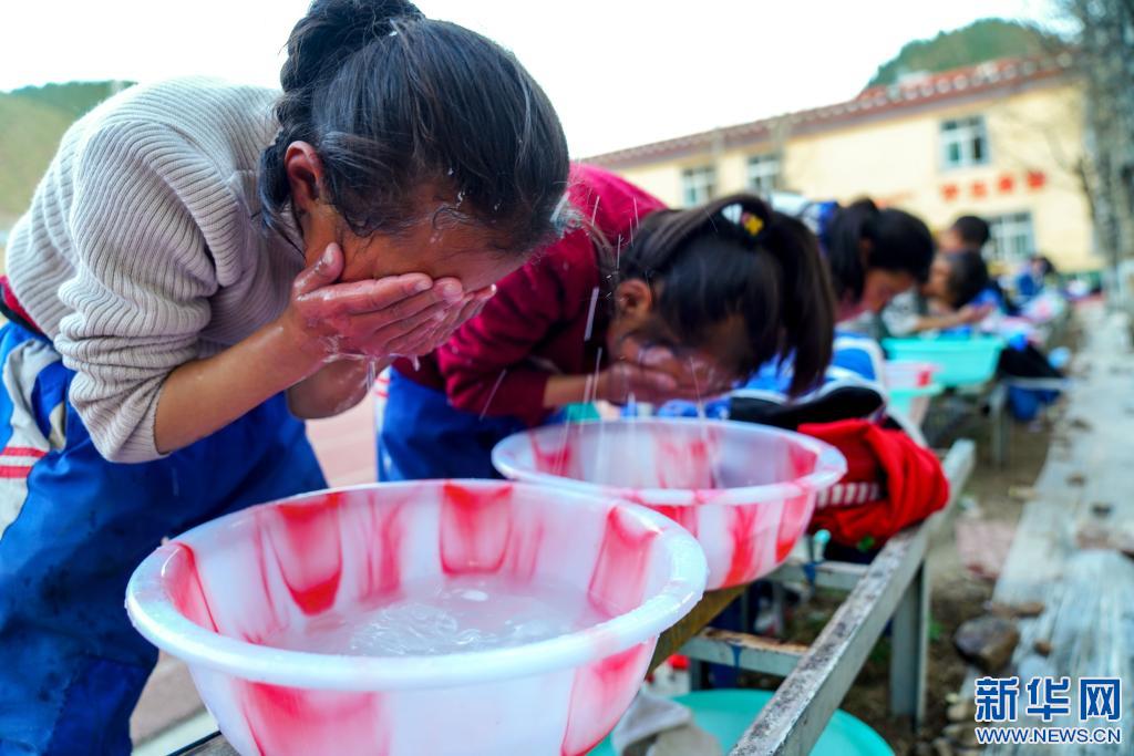 4月30日,在西藏昌都市類烏(wu) 齊縣桑多鎮第二小學,學生們(men) 用熱水洗漱。這套熱水設施由李純民發起的“齊興(xing) ”助學獎勵基金捐助。新華社記者 黃臻 攝