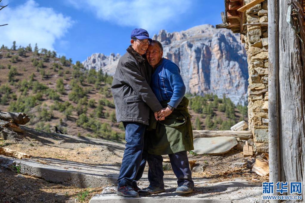 5月3日,李純民前往西藏昌都市類烏(wu) 齊縣伊日鄉(xiang) 崩日村看望1979年下鄉(xiang) 工作時結識的房東(dong) 一家。這是房東(dong) 的大兒(er) 子澤仁多加(右)在家門口熱情歡迎他。新華社記者 劉金海 攝
