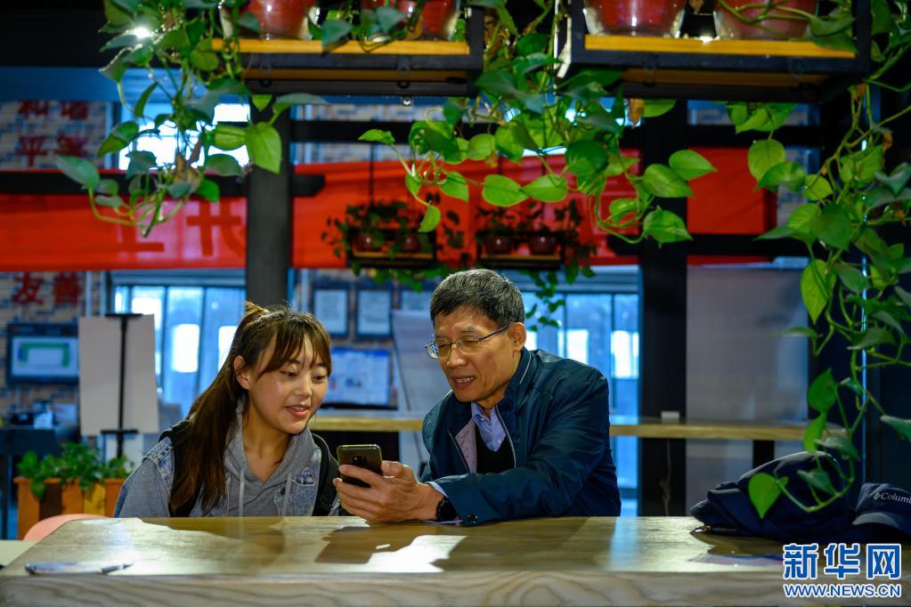 4月22日,在天津大學一學生食堂,李純民(右)與(yu) “齊興(xing) ”助學獎勵基金資助的藏族學生紮西措姆交流。新華社記者 劉金海 攝